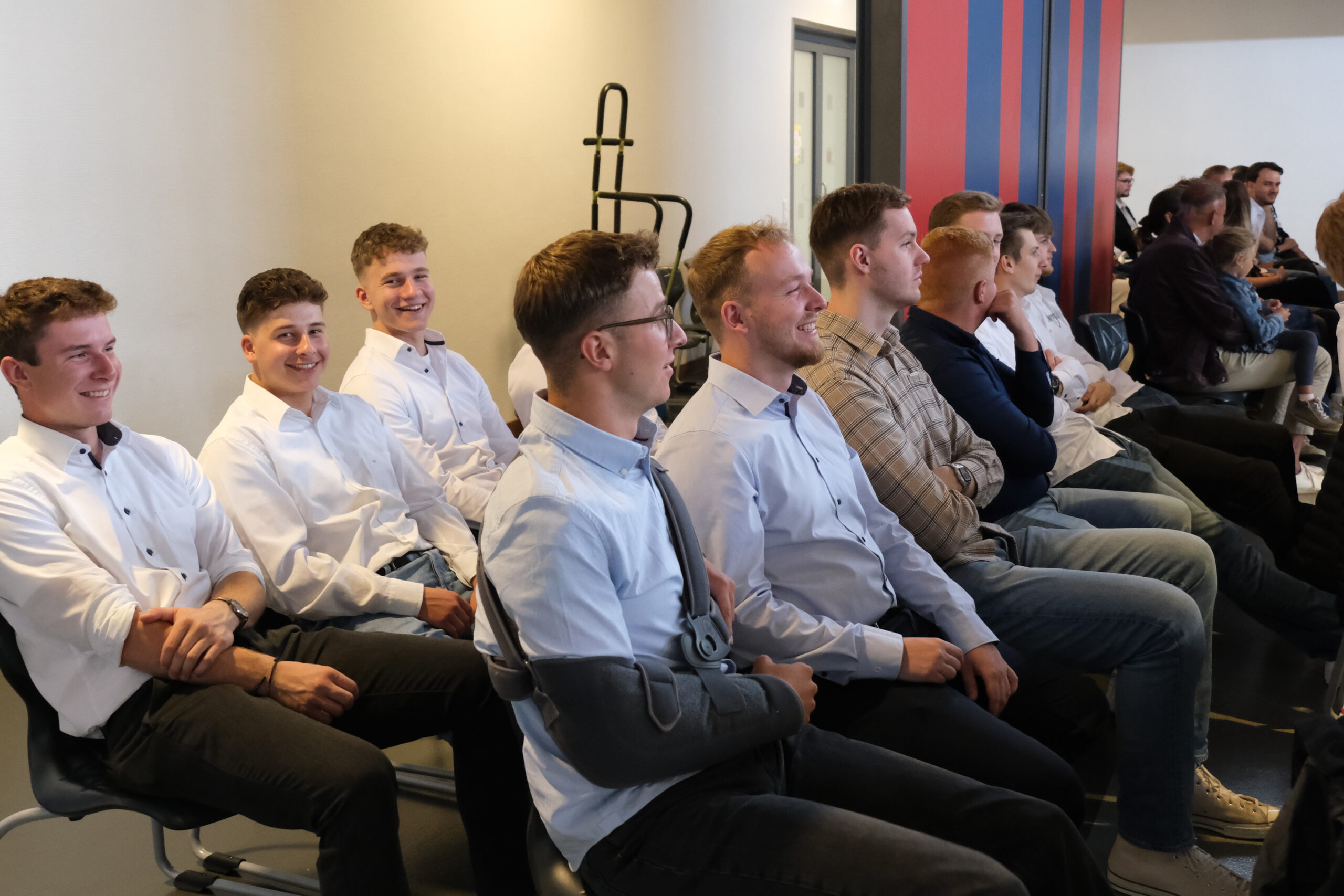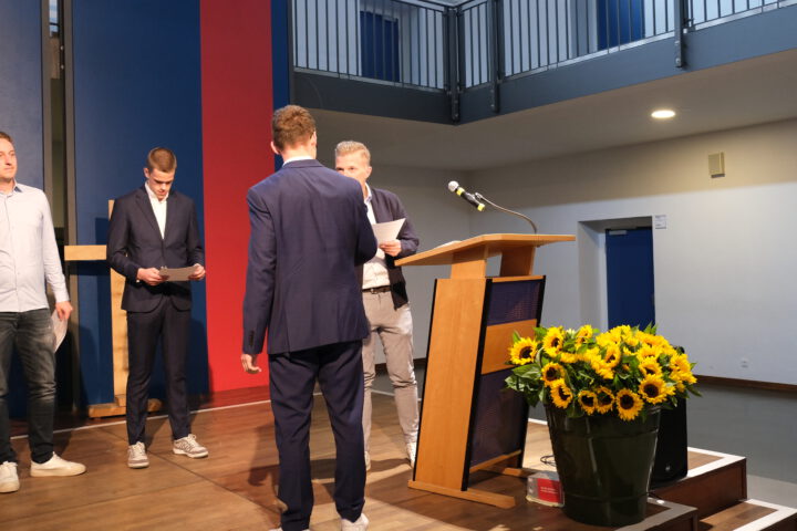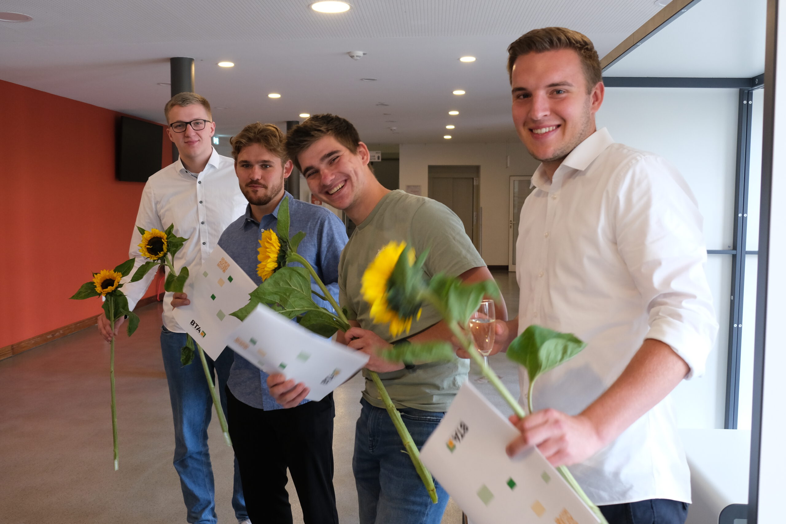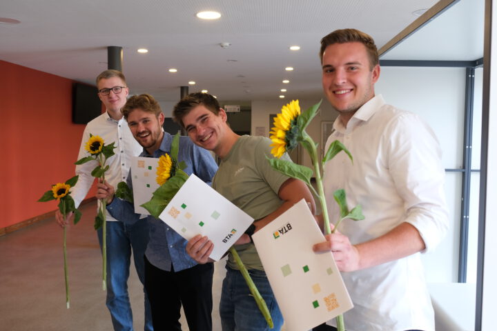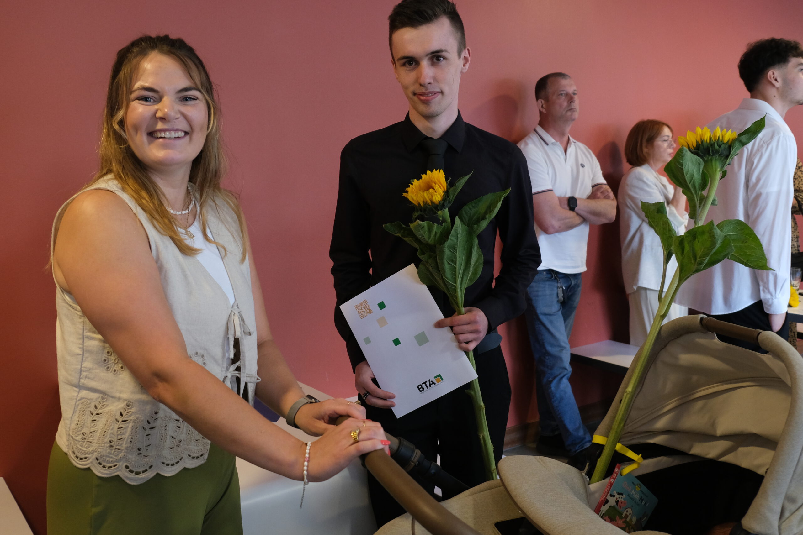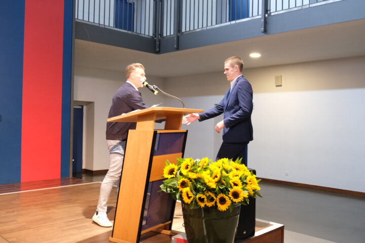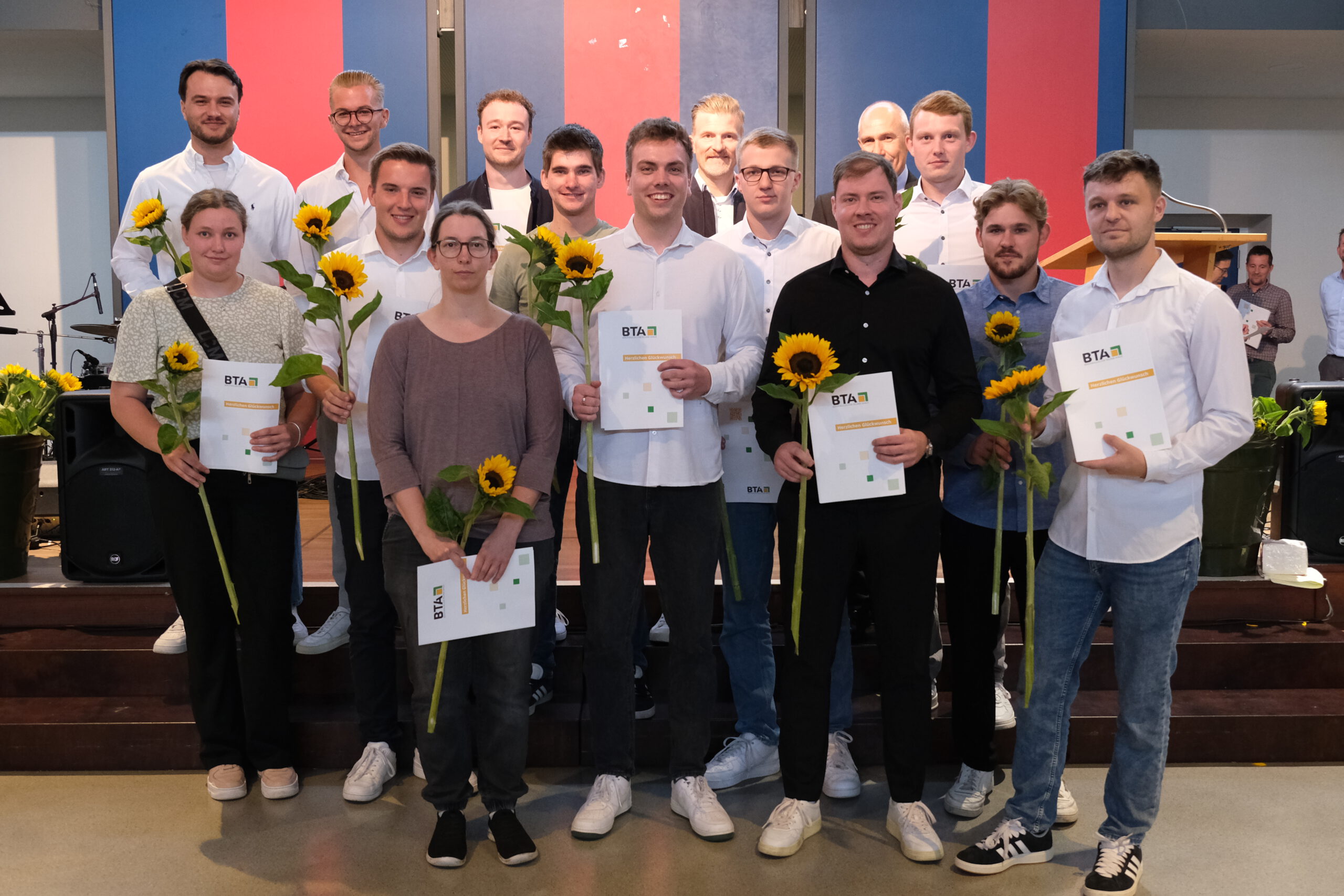 Der Vertreter des Fördervereins des BTA, Tobias Ross, überreichte in Anerkennung besonderer Leistungen Bildungsgutscheine im Wert von 125 Euro an die fünf besten Absolvent:innen des Jahrgangs: Paul Grotenhoff, Lotta Marie Schaten, Luca Terglane, Jonas Himmelberg, Alexander Wieser.