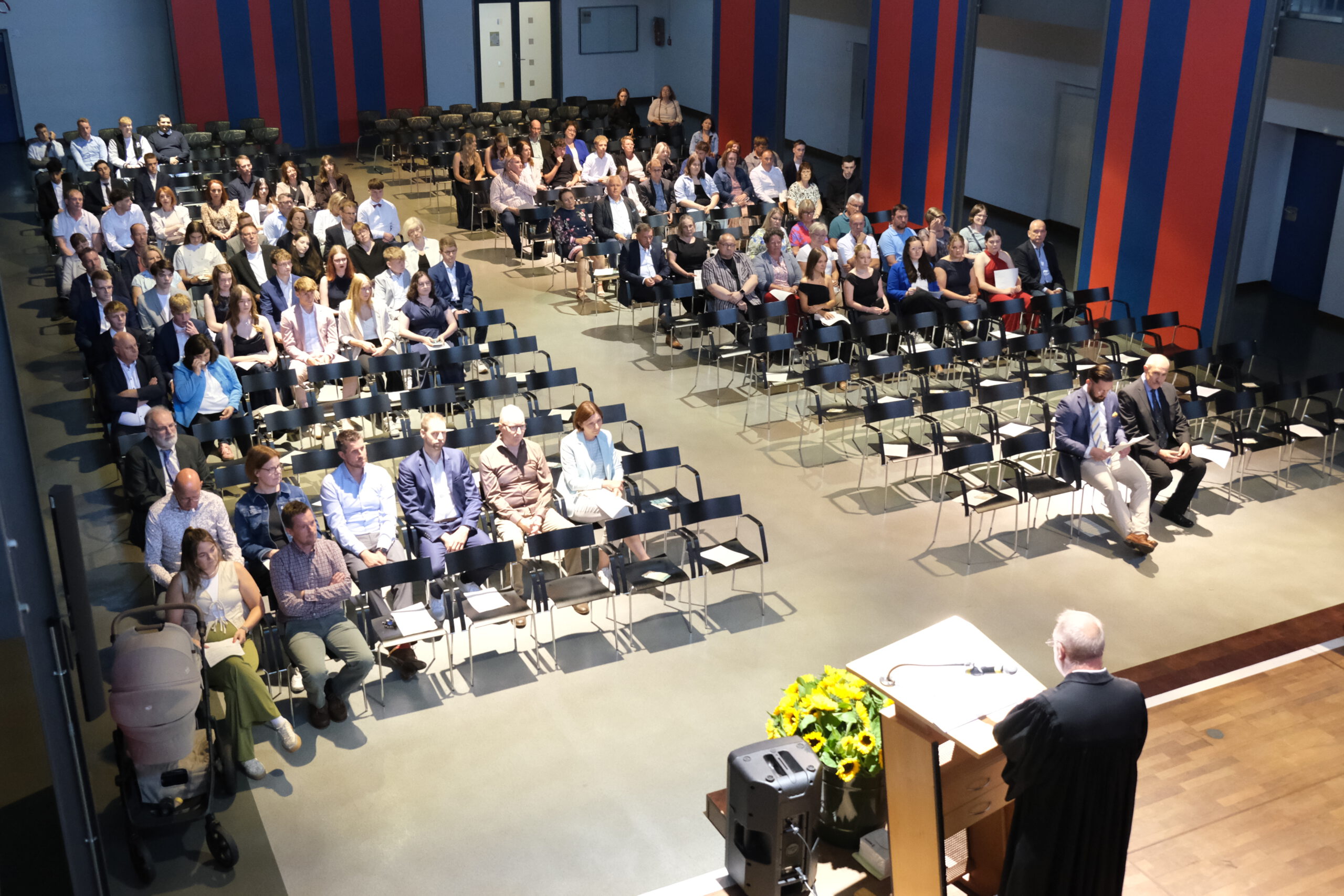 Claus-Martin Wiesenmüller dankte allen Eltern, Familien und Freunden, die den Absolventinnen und Absolventen zur Seite gestanden haben und in schwierigen Momenten Halt gaben. Gleichwohl galt sein Dank den Lehrkräften, die stets ihr Bestes gegeben hätten, um die Absolventinnen und Absolventen zu unterstützen, zu inspirieren und zu fördern.