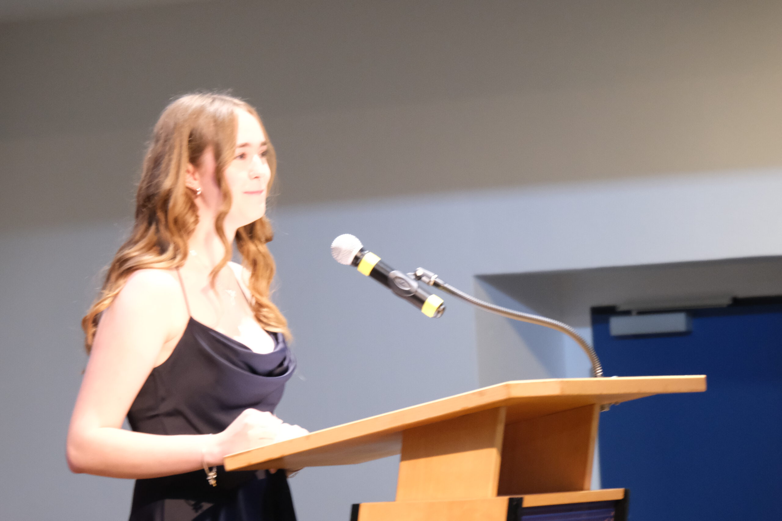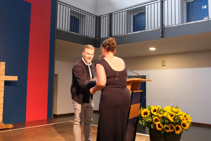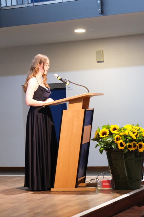 Die Schülersprecherin, Lotte Hamann, freute sich mit den stolzen Absolventinnen und Absolventen, die ihren Abschluss erfolgreich bestanden haben. Sie bedankte sich bei den Lehrkräften, den Eltern, Familien und Freunden, die Unterstützung geleistet und die Schulzeit erleichtert haben.