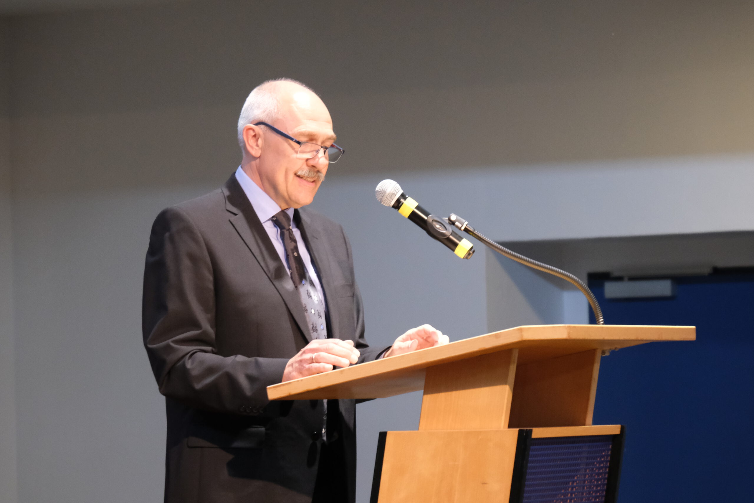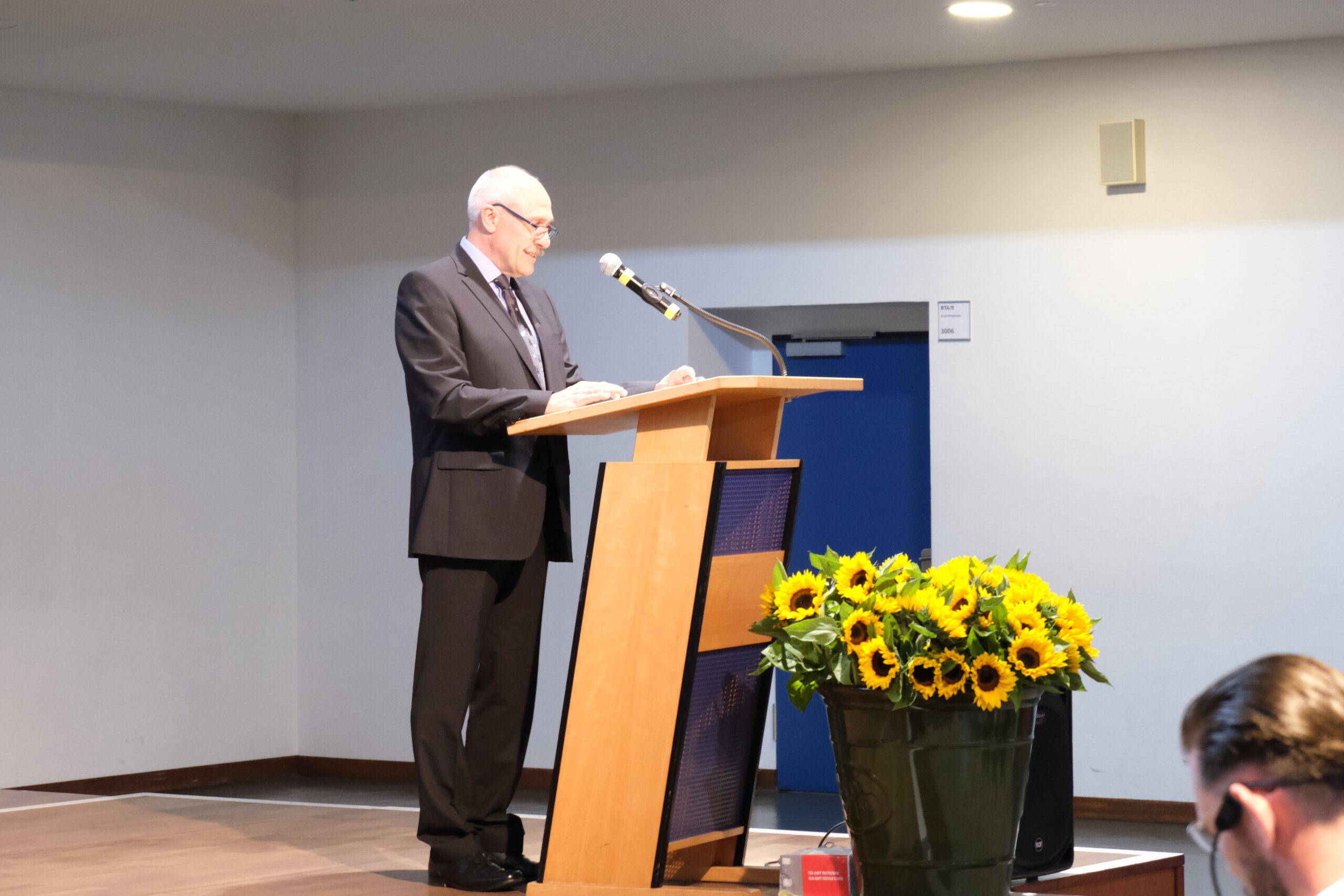 Der Schulleiter Claus-Martin Wiesenmüller begrüßte die Eltern und Gäste, das Kollegium, die Fachschülerinnen und die Fachschüler und die Abiturientinnen und Abiturienten zur Entlassfeier am Berufskolleg für Technik Ahaus.
