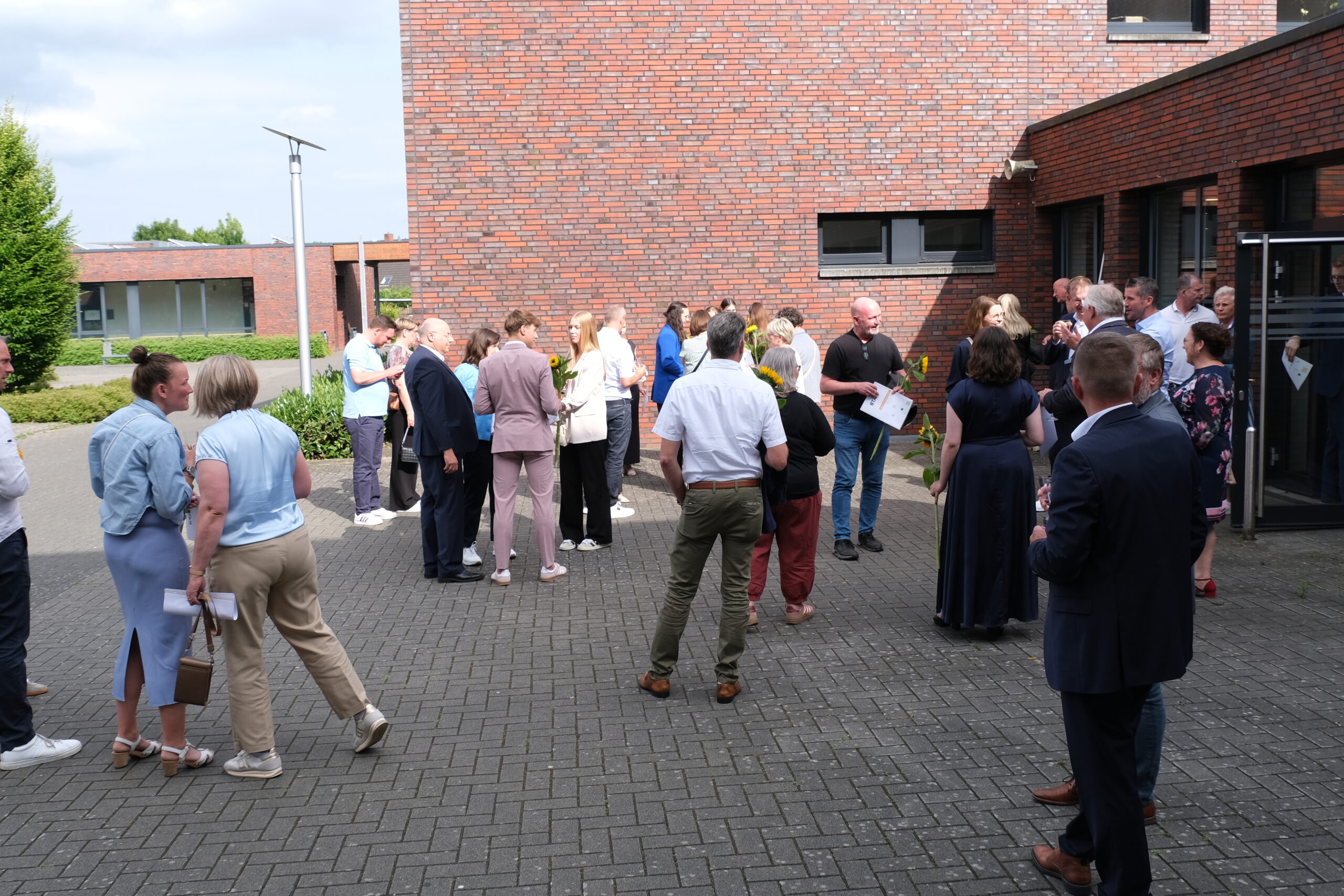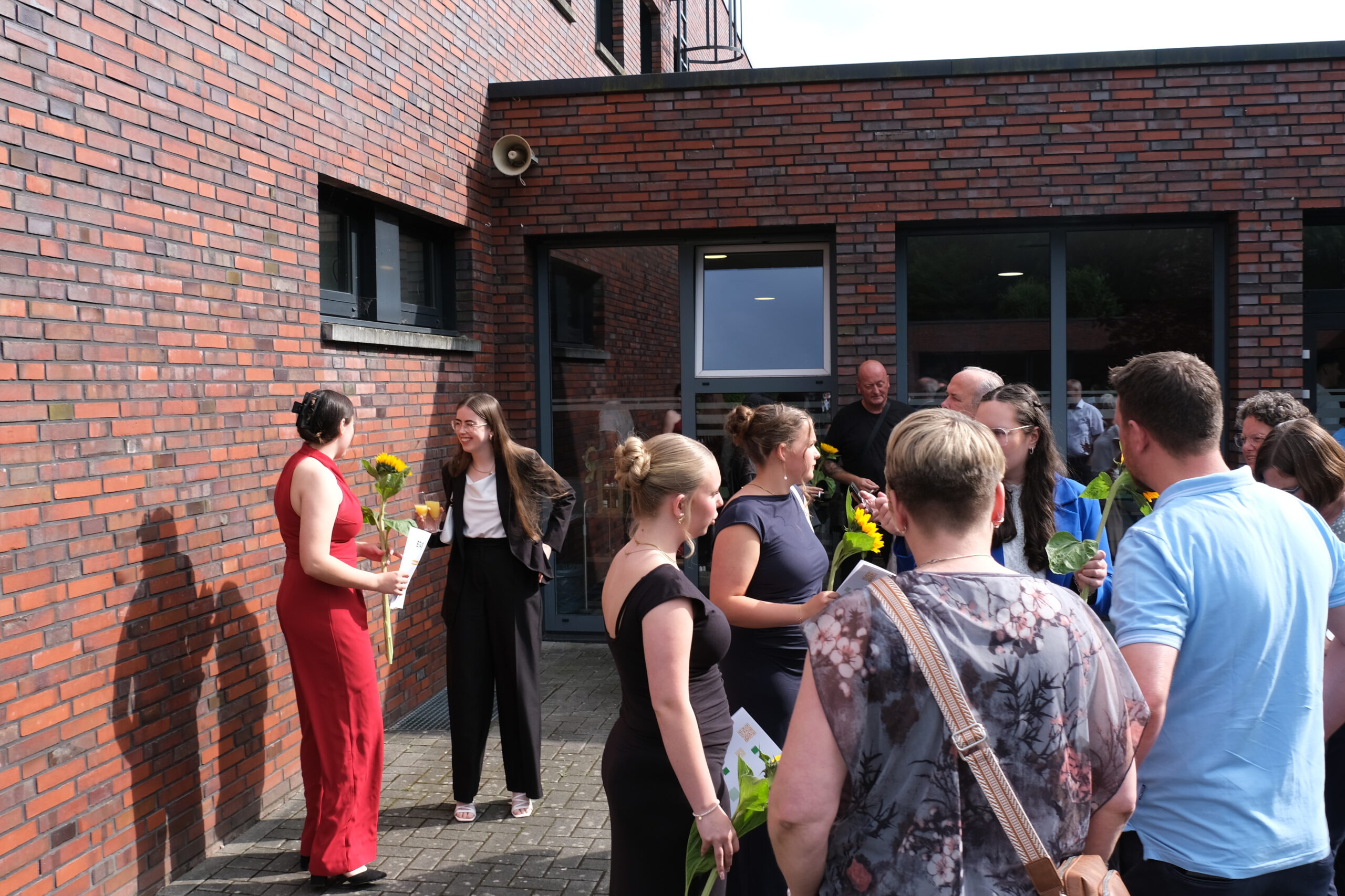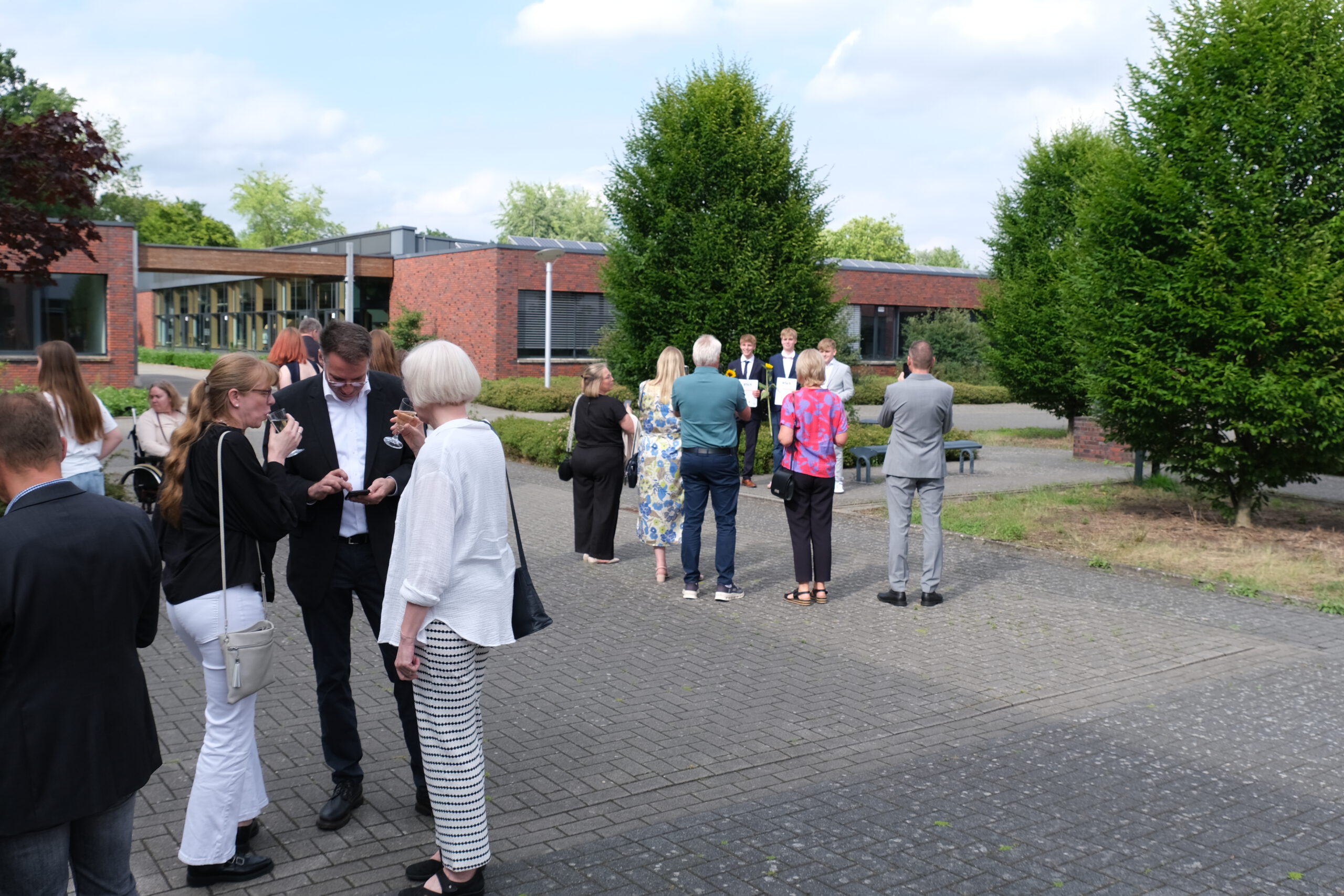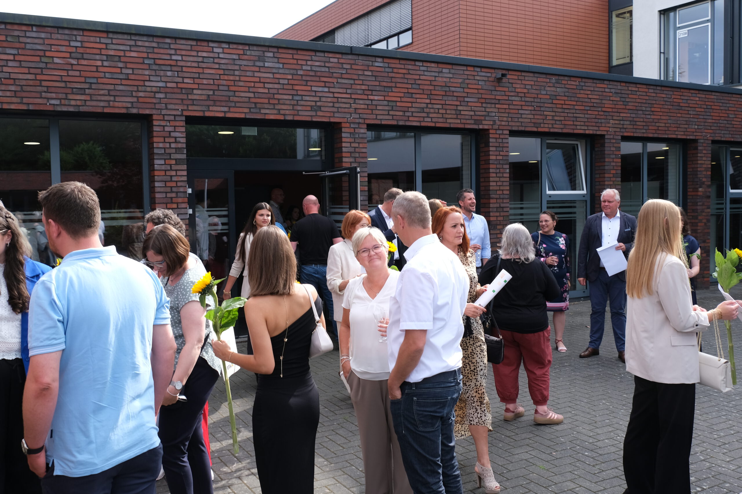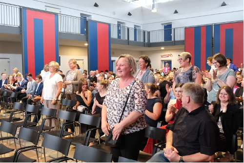 Um 16 Uhr begann die Entlassungsfeier unter der Moderation von Geschichts- und Deutschlehrer Gregor Burchardt, der zunächst um einen stehenden Applaus für die Mütter der Absolventinnen und Absolventen bat. Dieser Bitte kamen alle gerne nach.