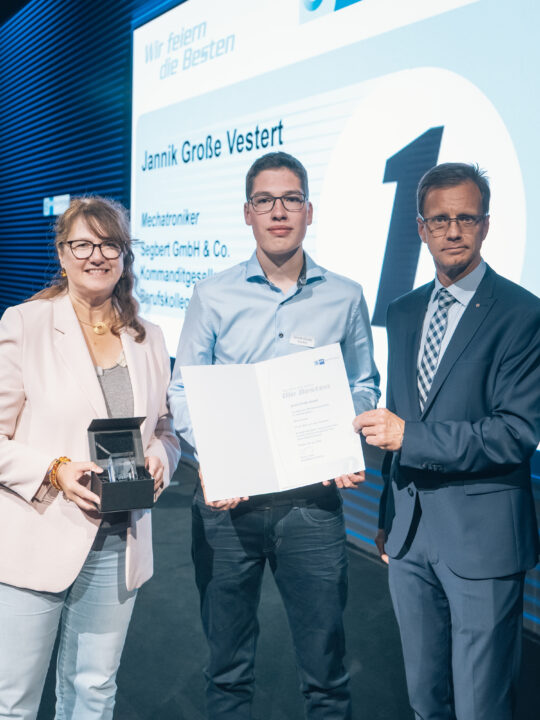 Auch Sühling beglückwünschte ausdrücklich die Unternehmen zu den Spitzenleistungen ihrer Auszubildenden. Sie dokumentierten das hohe Ausbildungsniveau. Den Angehörigen und Freunden der Besten dankte der IHK-Vizepräsident für die Unterstützung und Begleitung der Nachwuchskräfte auch in schwierigen Phasen. Ausdrücklich lobte er die Ausbilderinnen und Ausbilder in den Unternehmen sowie die Lehrkräfte an den Berufsschulen für ihre Arbeit. Sie seien unentbehrliche Teile des erfolgreichen deutschen Ausbildungssystems.
