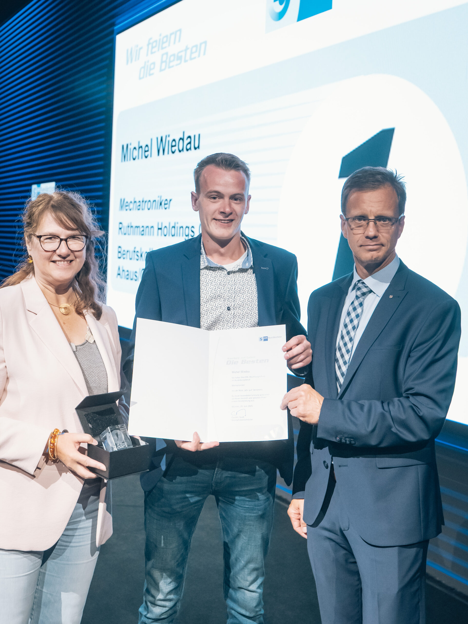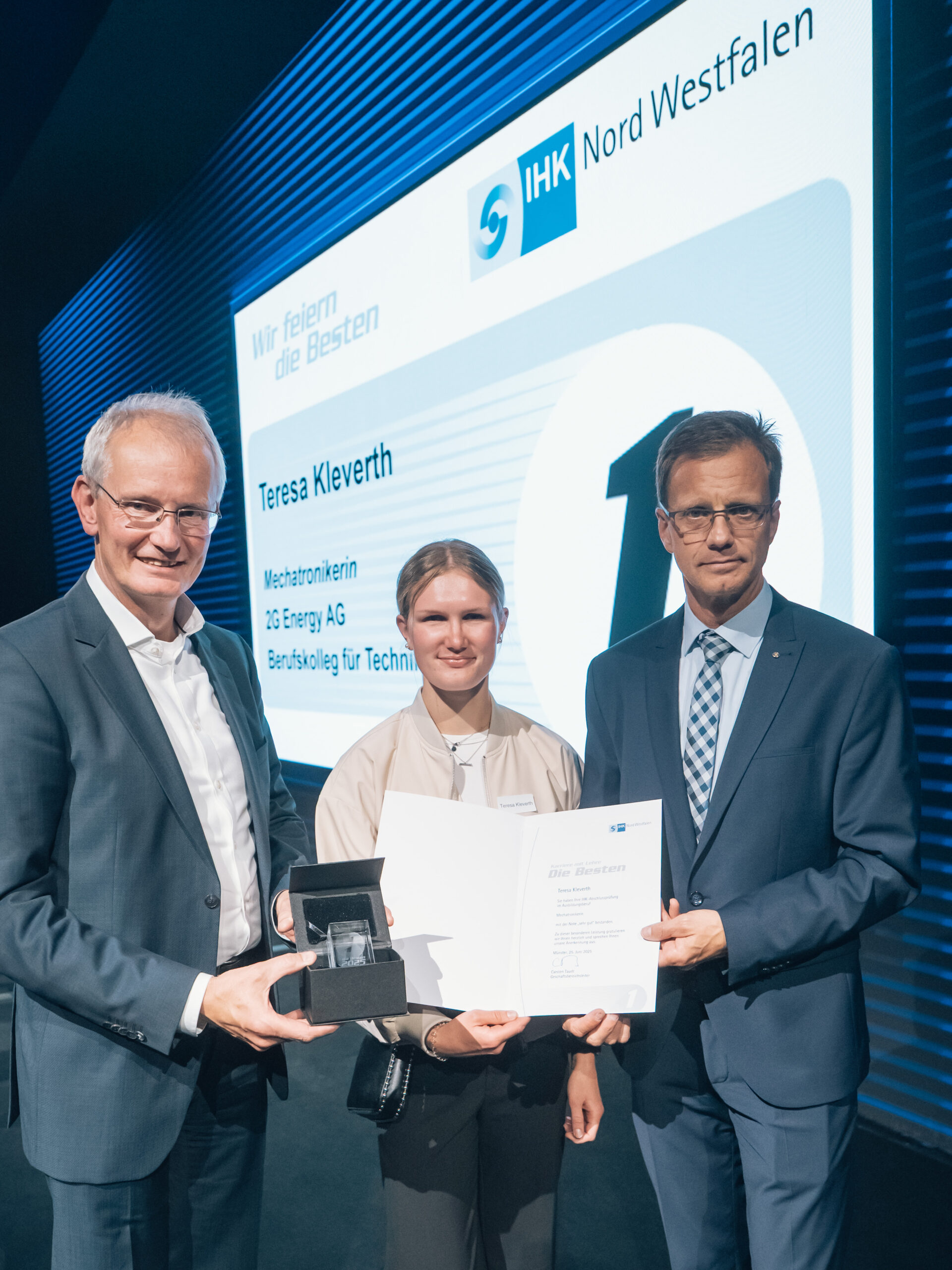 71 Auszubildende von Unternehmen im Kreis Borken haben ihre Abschlussprüfung bei der Industrie- und Handelskammer (IHK) Nord Westfalen mit der Traumnote „sehr gut“ abgeschlossen. Für diese Spitzenleistung wurden die jungen Fachkräfte am 16. September 2025 in der Tobit.Town! in Ahaus gefeiert.